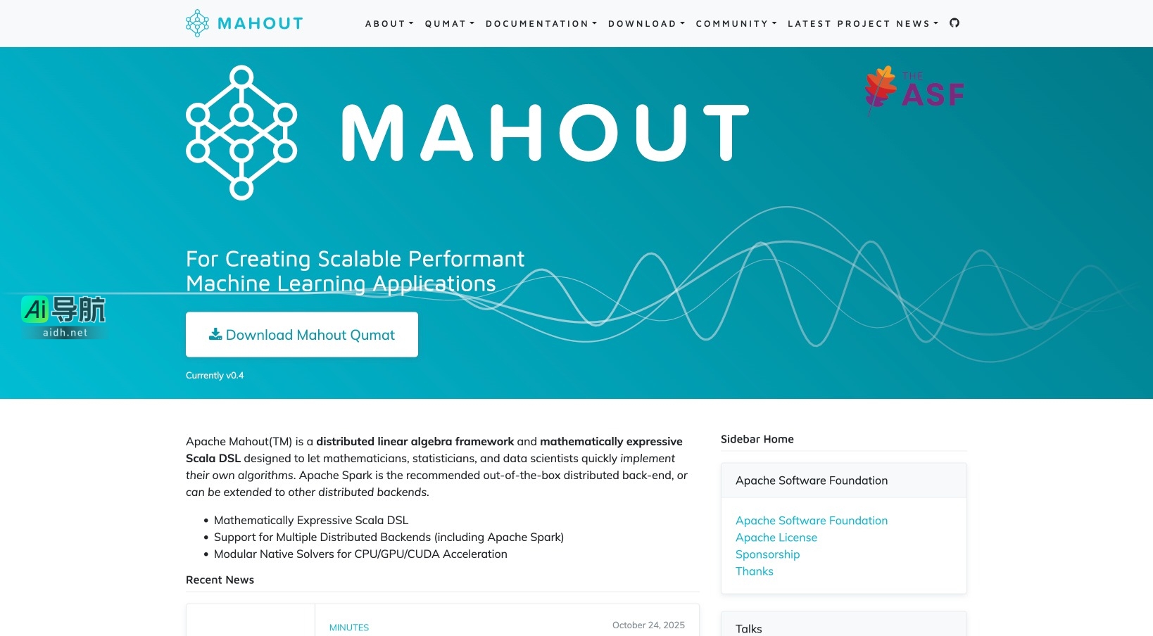 Apache Mahout的最新版本为0.4,用户可以通过官方网站下载最新的文档和相关资源。该项目的持续更新和社区活动使得用户能够获得最新的技术支持和应用案例,适合希望在机器学习领域深入探索的开发者和研究人员。