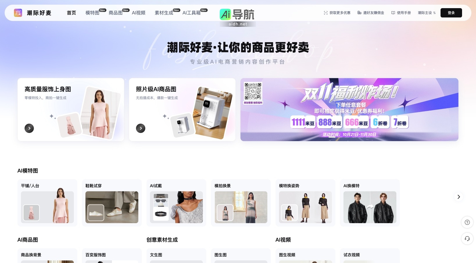 潮际好麦是一款专业级AI电商营销内容创作平台,旨在帮助商家提升商品的销售效果。该平台提供多种创新的功能,利用先进的人工智能技术,简化了电商内容的生成过程,适合各种电商从业者使用。