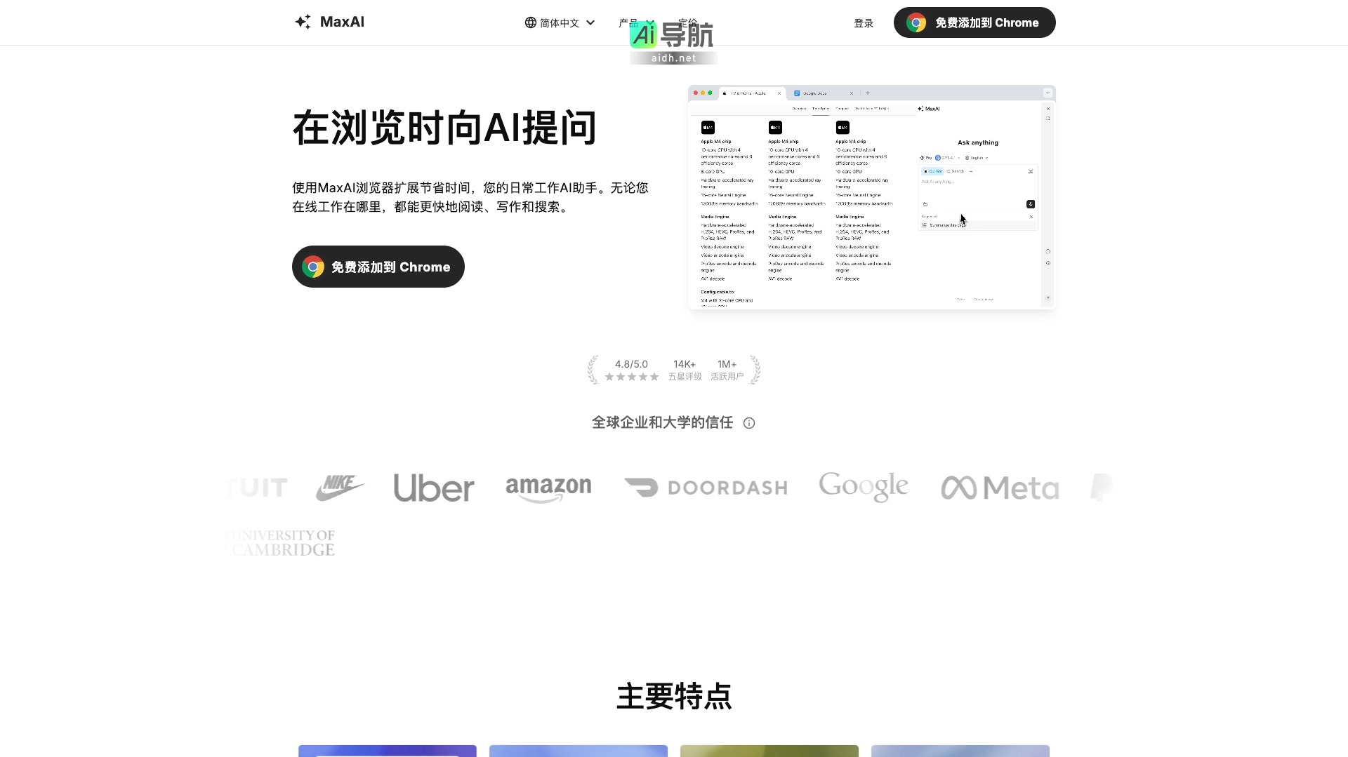 MaxAI在用户中获得了极高的评价,拥有超过14K的五星评级和1M+的活跃用户,受到全球企业和大学的信任。用户反馈显示,MaxAI能够显著节省时间,提高内容理解质量,减少写作和编辑时间,提升写作质量,帮助企业节省成本。通过免费添加到Chrome,用户可以轻松体验MaxAI带来的高效工作方式。