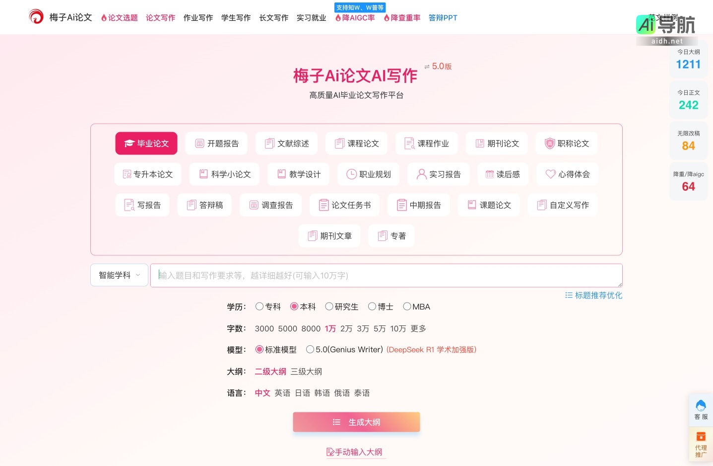 梅子Ai论文是一个专注于学术写作的高质量AI平台,旨在为学生和研究人员提供全面的论文写作支持。该平台的主要功能包括论文选题、写作、降重等,适用于各类学术论文和作业,满足不同学历层次的需求。