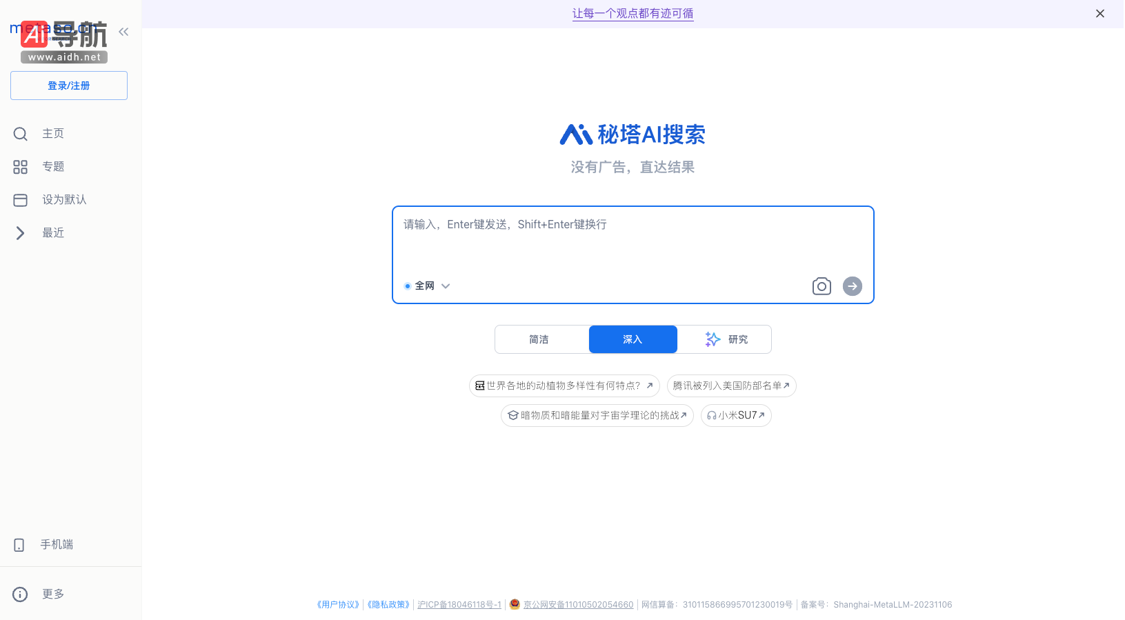 - 打开网站:首先,在浏览器中访问秘塔AI搜索的官网,无需登录即可使用。