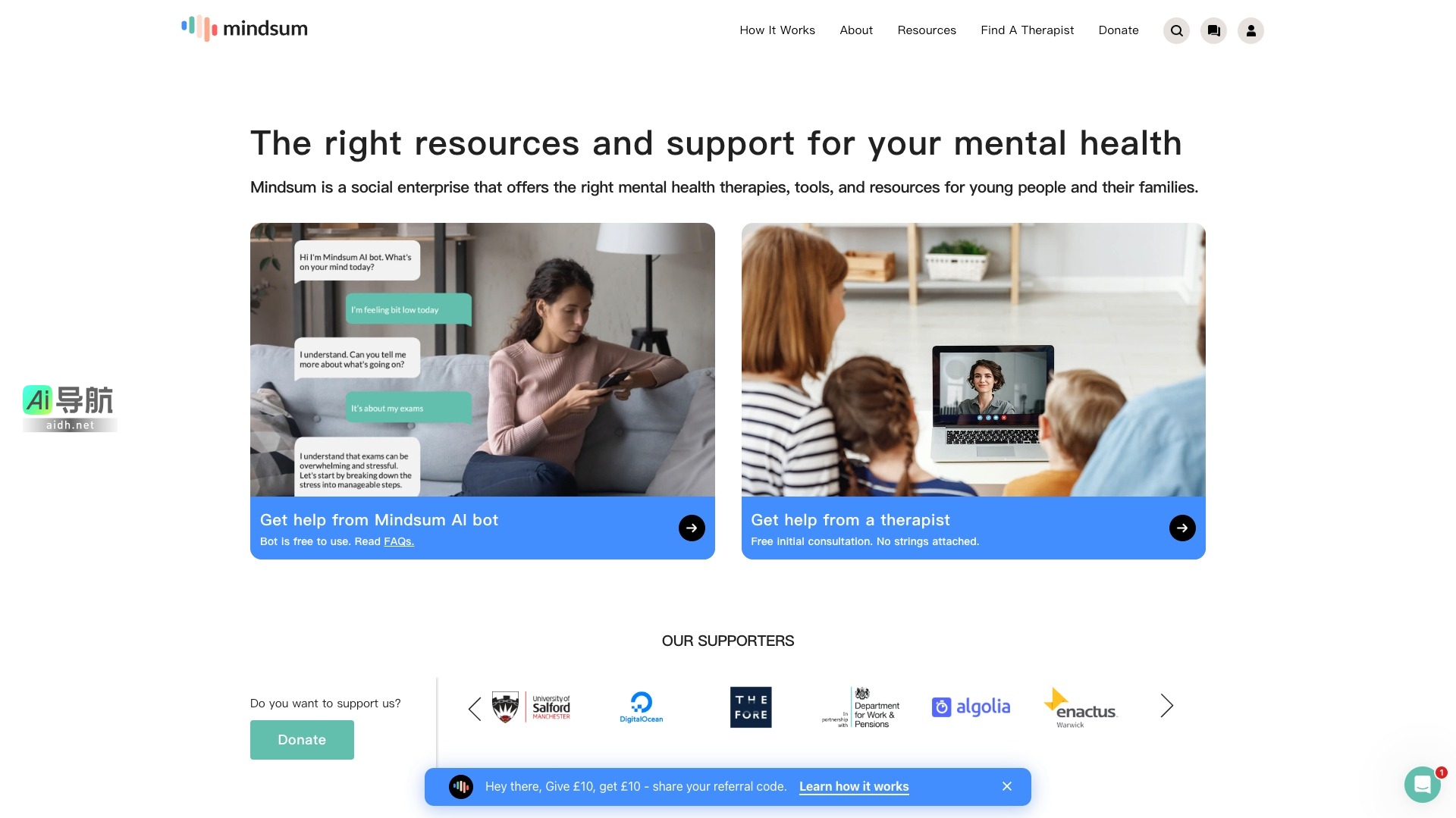 Mindsum是一家专注于心理健康的社会企业,致力于为年轻人及其家庭提供合适的心理健康治疗、工具和资源。该平台通过多种方式帮助用户获得所需的支持,确保每个人都能在心理健康方面得到关注和帮助。