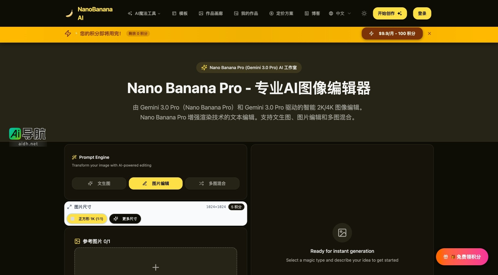 Nano Banana Pro 是一款基于先进 Gemini 3.0 Pro 技术的专业 AI 图像编辑器,旨在为用户提供高效、精准的图像处理解决方案。该平台支持多种图像生成和编辑功能,适合设计师、内容创作者及各行业的专业用户。以下是 Nano Banana Pro 的主要特点和功能介绍: