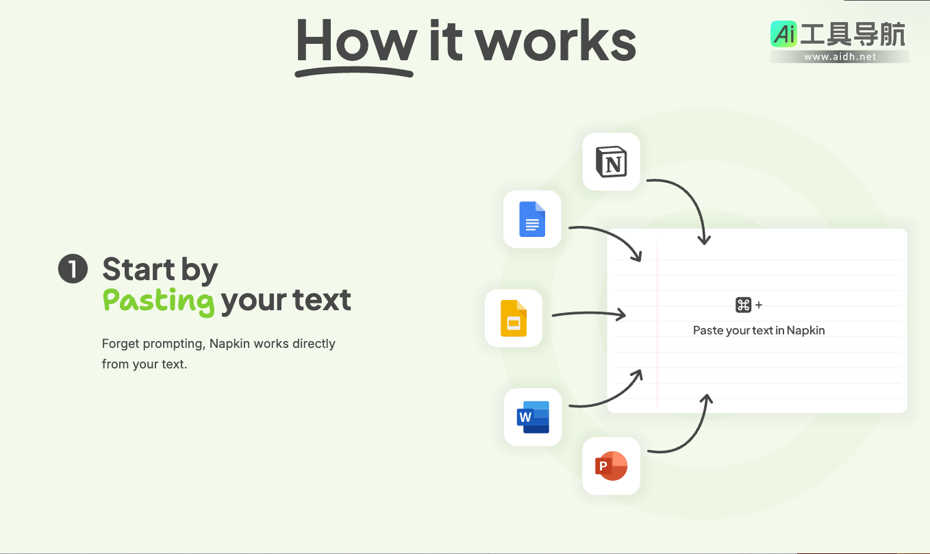 使用Napkin AI非常简便,用户只需按照以下步骤即可快速生成专业的视觉内容: