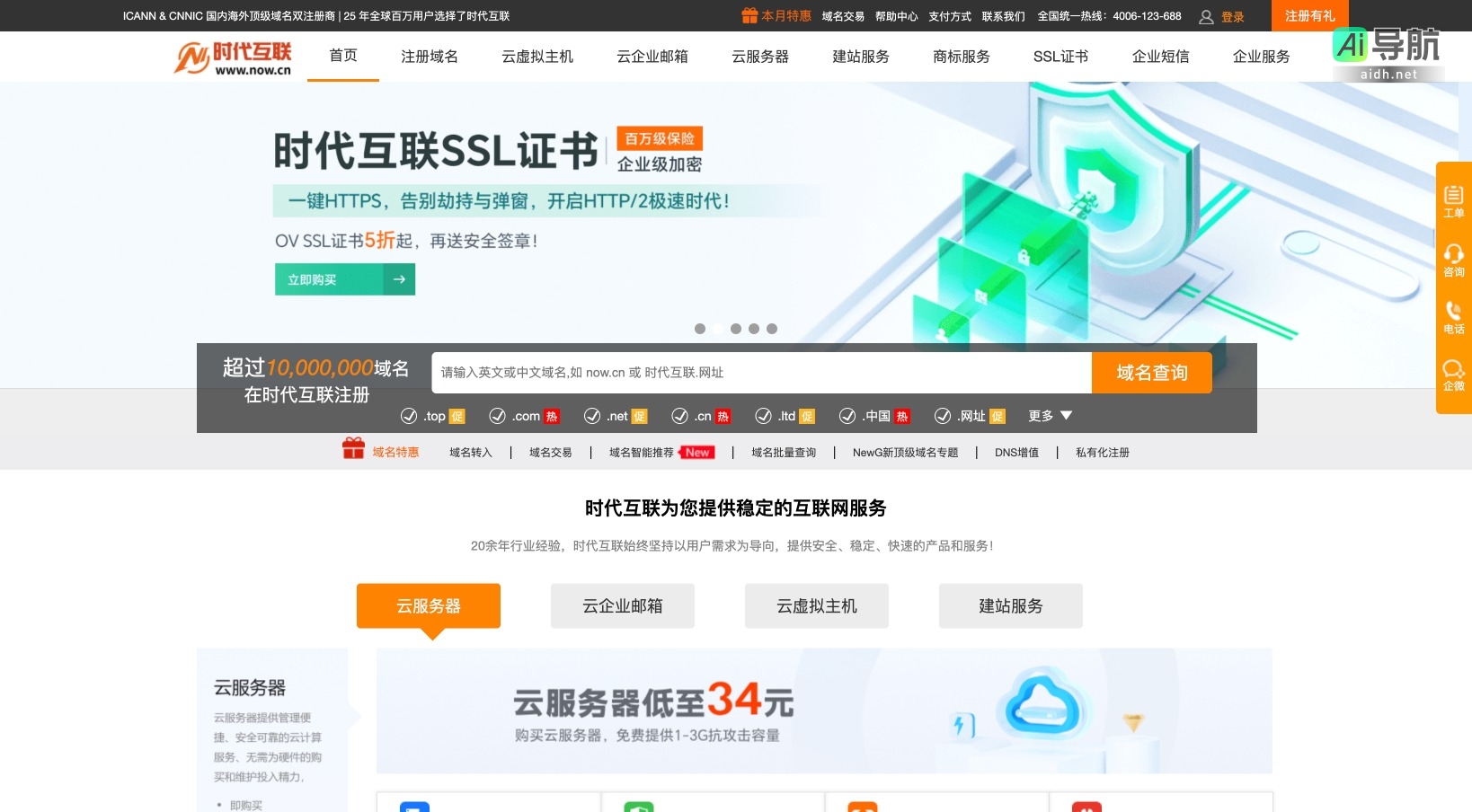 - 域名注册服务:时代互联提供多种顶级域名注册服务,包括.com、.net、.cn等,用户可以享受特惠价格,部分域名低至4元。平台支持域名转入、批量查询和智能推荐,方便用户选择合适的域名。