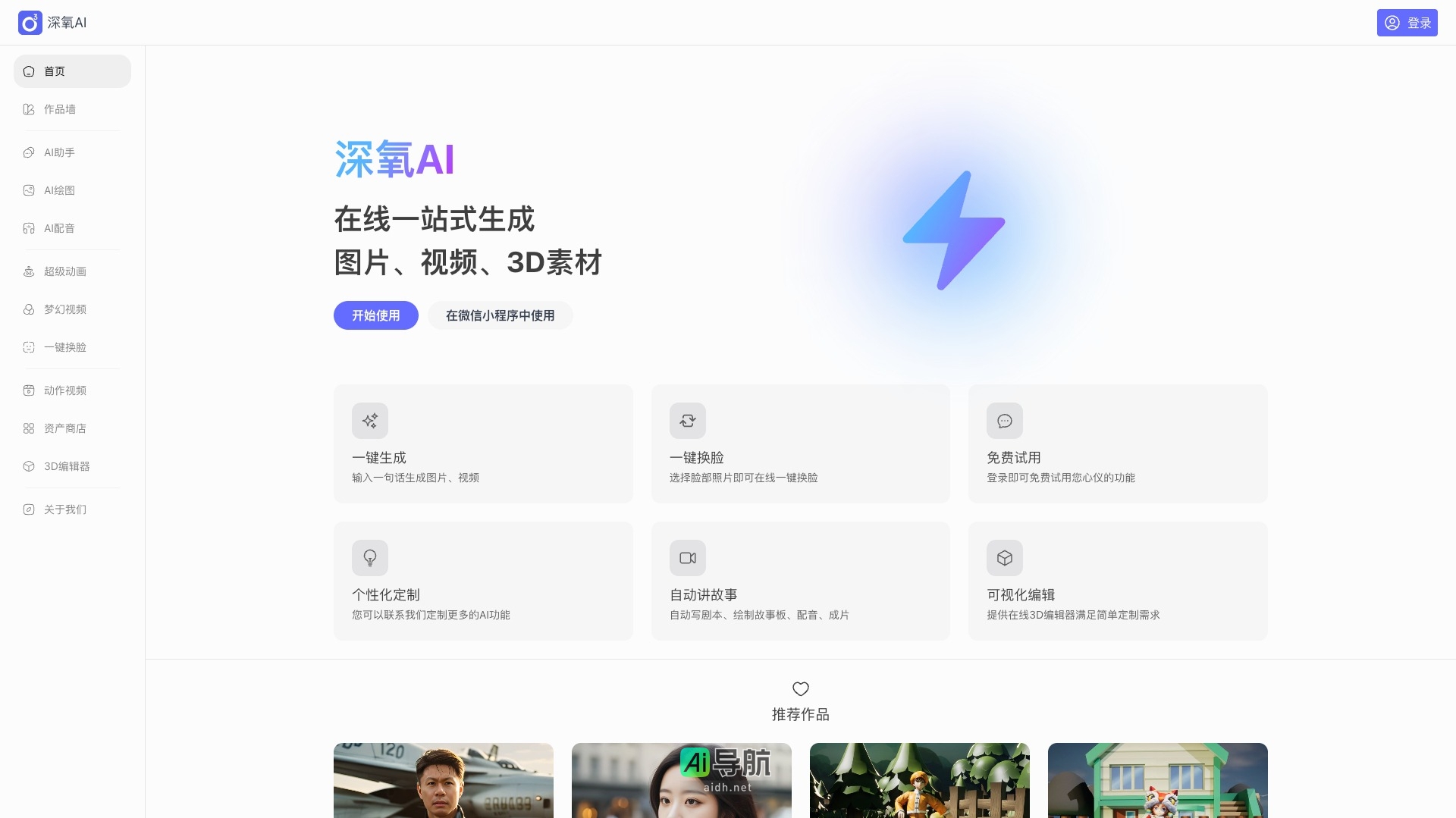深氧AI是一款在线一站式生成平台,致力于为用户提供多样化的AI创作工具,涵盖图片、视频及3D素材的生成。以下是深氧AI的主要功能和特点:
