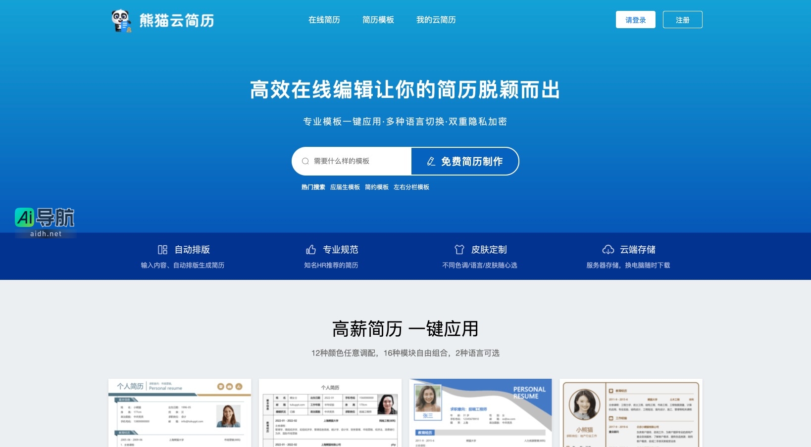 熊猫云简历是一款高效的在线简历制作工具,旨在帮助用户轻松创建出色的简历。其主要功能和特点包括: