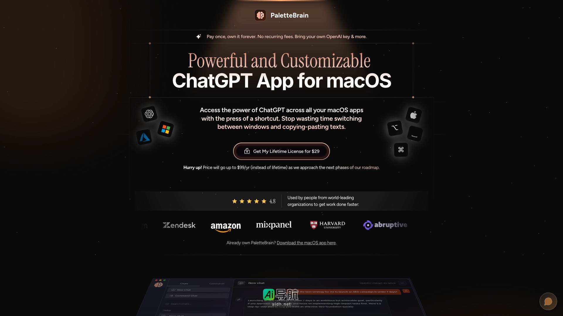 PaletteBrain 是一款强大且可定制的 ChatGPT 应用程序,专为 macOS 用户设计。它允许用户通过简单的快捷键在所有 macOS 应用中访问 ChatGPT 的强大功能,极大地提高了工作效率。以下是 PaletteBrain 的主要特点和优势:
