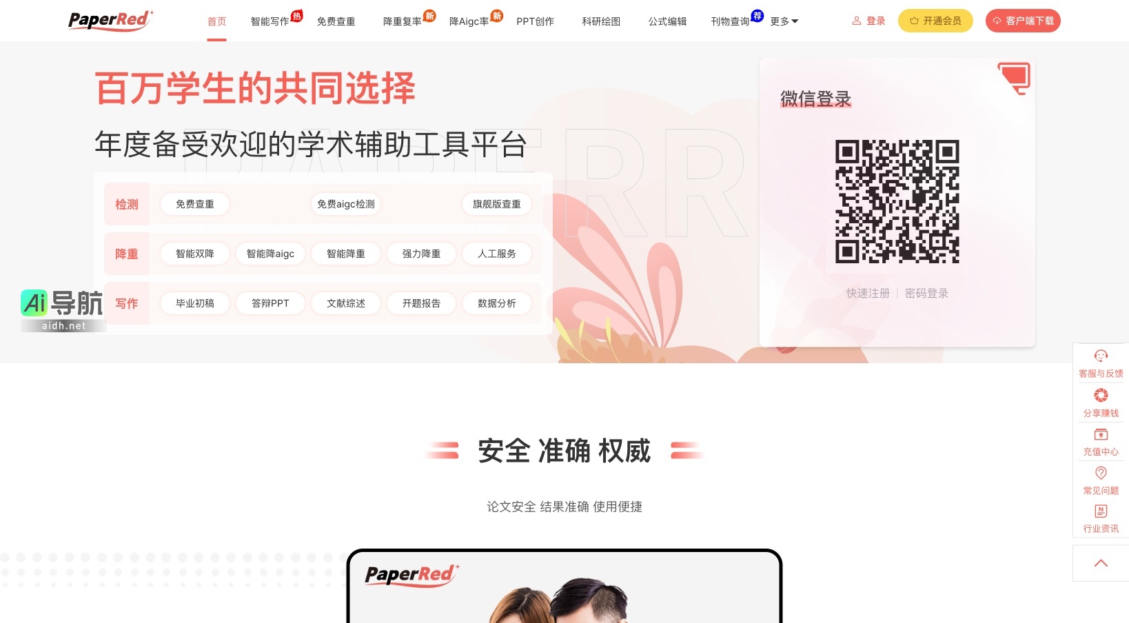 我中心提供Paperred免费论文查重,免费aigc检测,检测结果严格,准确接近学校维普,知网系统,每天5次免费查重。ai智能写作系统,快速完成一篇高质量的原创论文初稿,文献综述,开题报告,任务书,期刊论文,真实数据,真实参考文献,图文并茂,公式,图表齐全。ai智能降重系统,在保持原文格式不变,语义不变,语句通顺的基础是,一键降低查重率和aigc率,不达标全额退款。PaperRed是备受喜爱的一站式学术工具平台。