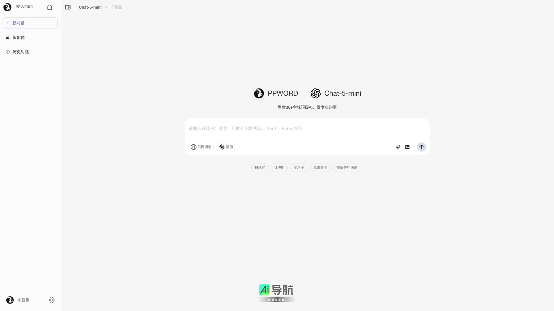 PPWORD的Chat-5-mini版本提供不限量的使用体验,用户无需登录即可享受这些强大的功能,适合各类人群,包括学生、职场人士和企业用户。通过PPWORD,用户可以高效地完成各项任务,提升工作和学习的效率。