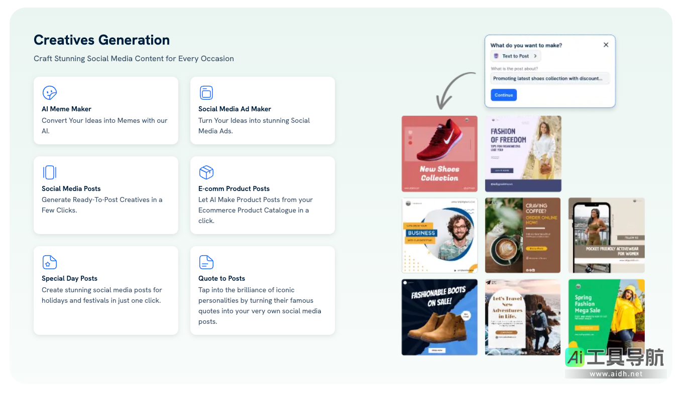 无论你是想在Facebook、Instagram、LinkedIn还是TikTok上投放广告,Predis AI 都能帮助你快速生成多种格式的广告创意。系统支持从社交媒体帖子到电商产品广告的多种创作需求,并且能够根据广告平台的要求,自动调整广告文案和设计。例如,生成的电商产品广告可以直接应用于店铺产品页面,帮助商家提升转化率;而生成的社交媒体广告则可以迅速在Instagram或Facebook上推广,提高品牌曝光度。