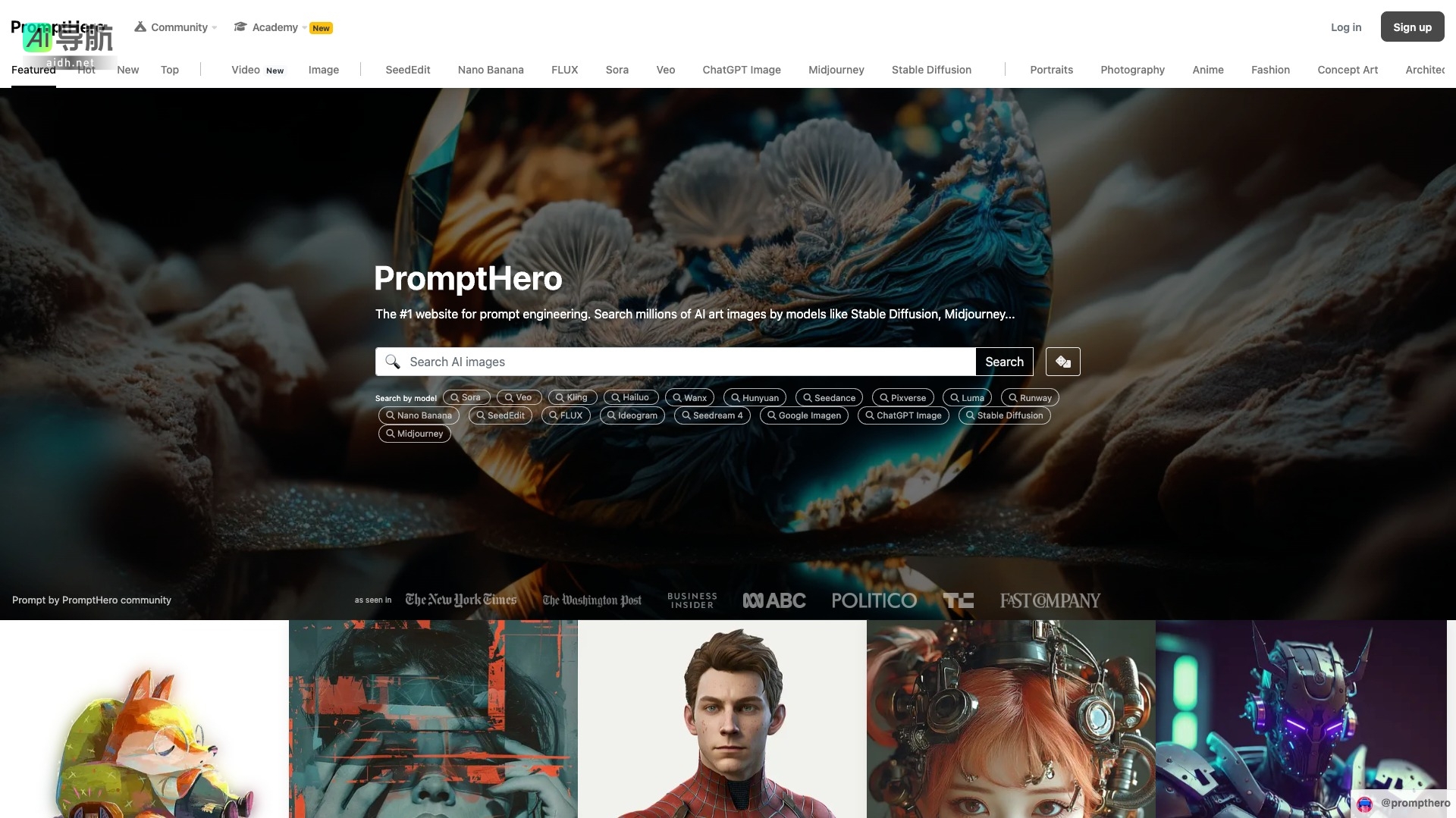 PromptHero是一个专注于提示工程的顶级网站,致力于为用户提供丰富的AI艺术图像搜索体验。用户可以通过该平台搜索数百万张由不同模型生成的艺术作品,如Stable Diffusion和Midjourney等。以下是PromptHero的主要功能和特点: