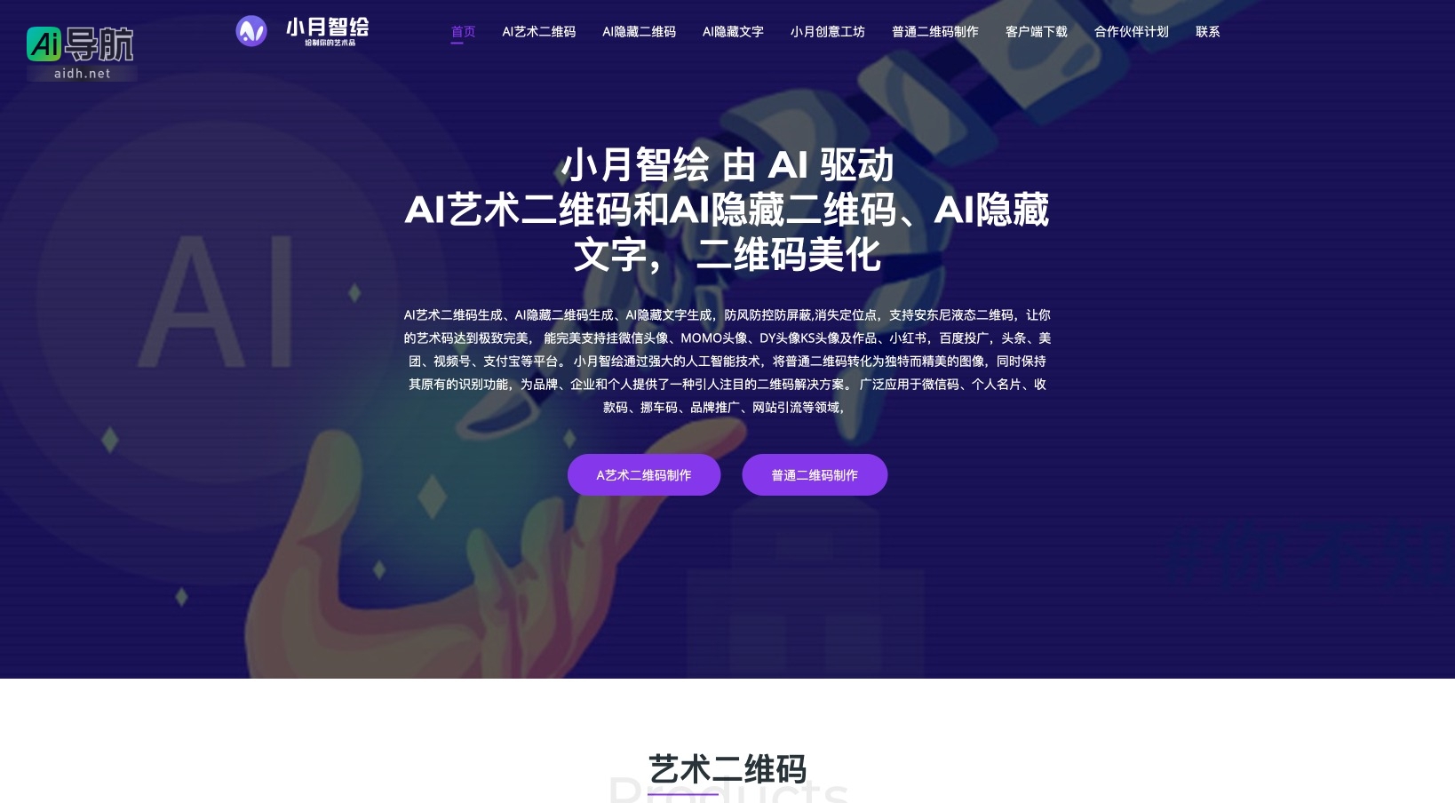- AI艺术二维码与AI隐藏二维码:小月智绘支持生成AI艺术二维码和AI隐藏二维码,能够将二维码与艺术元素结合,创造出视觉上吸引人的作品,适用于各种社交媒体平台,如微信、抖音、小红书等。
