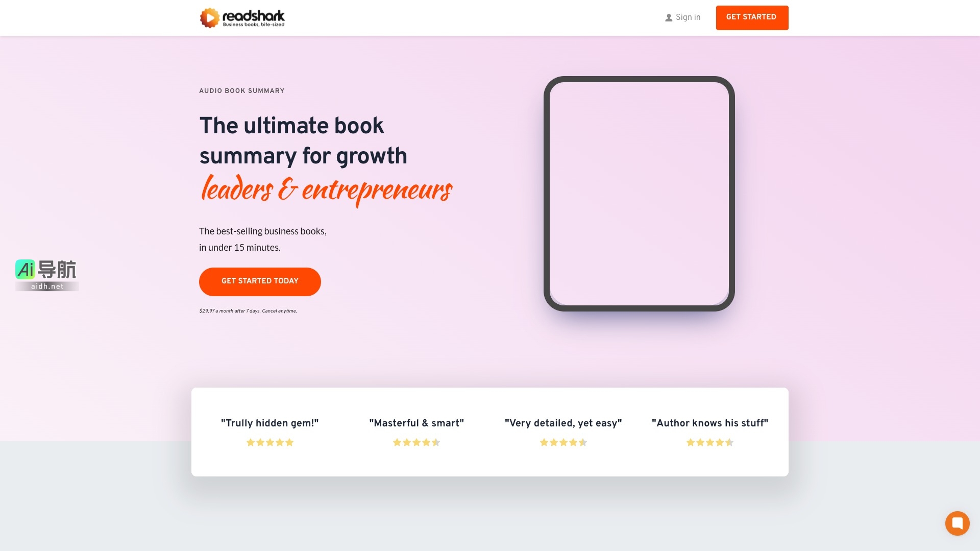 Readshark是一款专为成长型领导者和企业家设计的书籍摘要平台,旨在将畅销的商业和个人发展书籍的核心思想浓缩成15分钟的视频、音频和文本内容,帮助用户在繁忙的日程中高效学习。以下是Readshark的主要功能和优势: