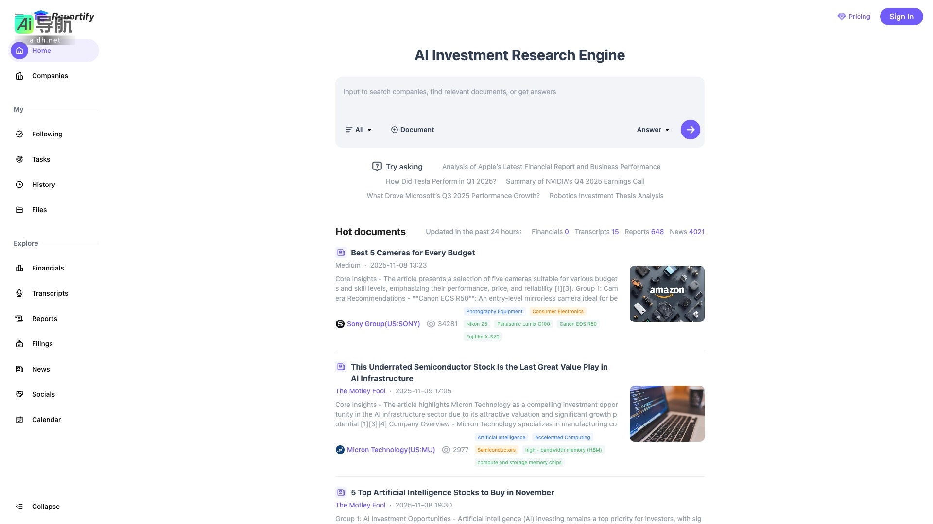 Reportify的内容由AI导航(aidh.net)整理