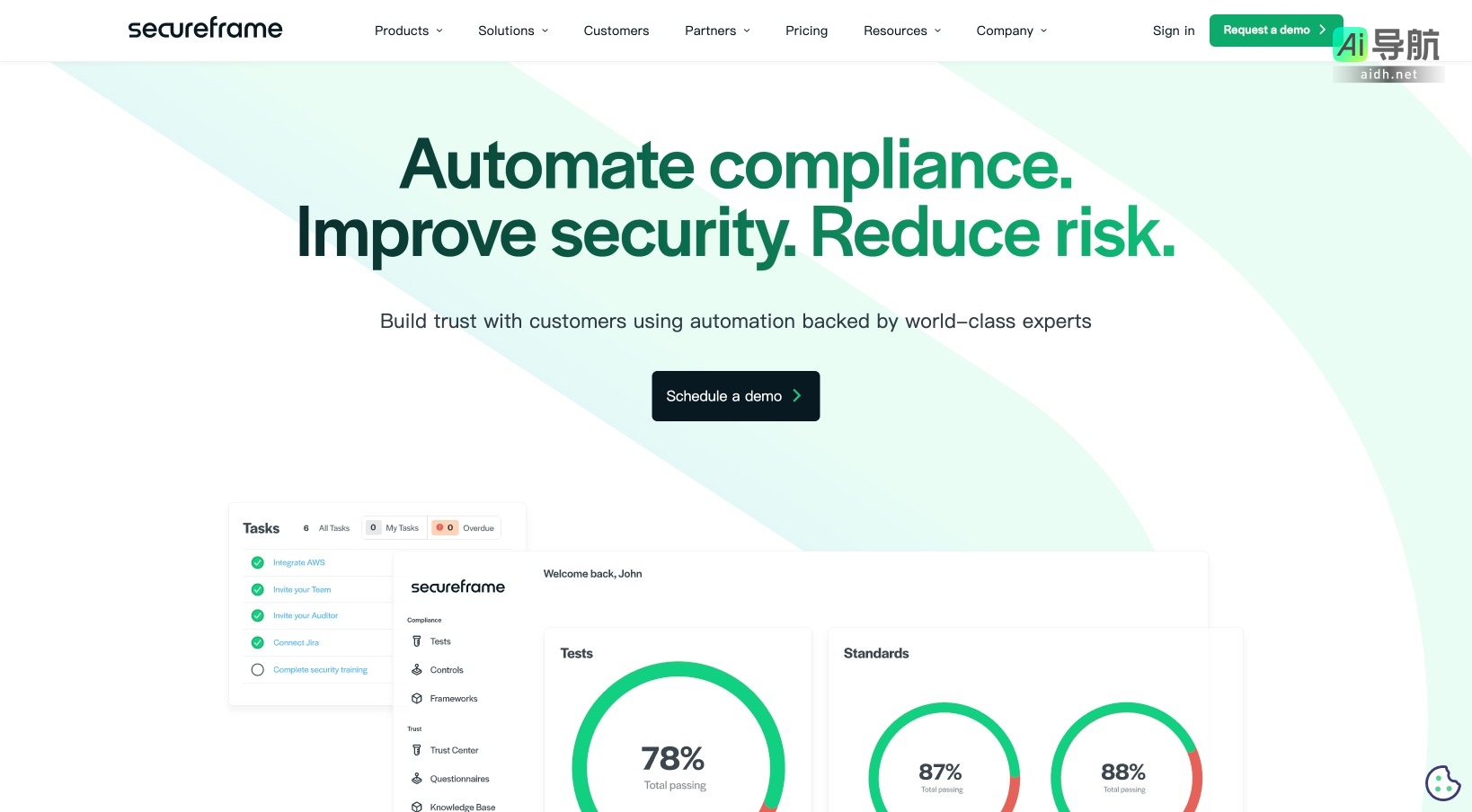 Secureframe 是一个专注于安全合规性的自动化平台,旨在帮助企业简化合规流程,提高安全性,降低风险,并建立客户信任。通过其强大的人工智能和自动化功能,Secureframe 提供了一系列解决方案,适用于不同规模的企业,确保用户能够高效地管理安全、风险和合规性。