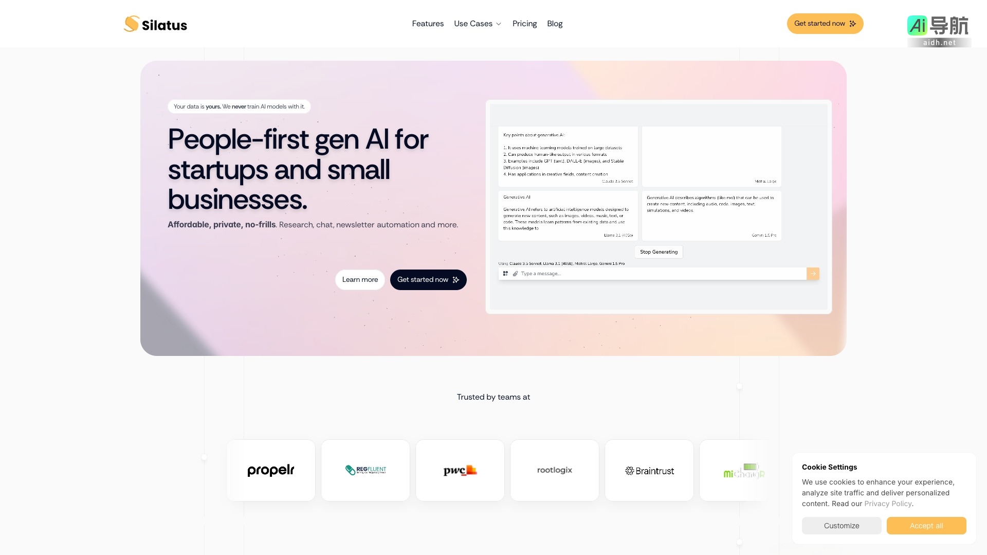 Silatus是一款专为初创企业和小型企业设计的以人为本的生成式人工智能工具,旨在提供经济实惠且注重隐私的解决方案。该平台的主要特点包括: