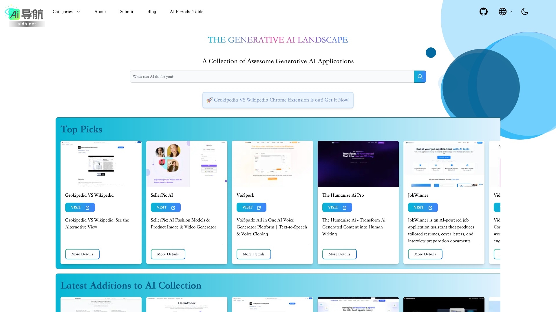 - 最新的AI工具推荐:网站定期更新最新的AI应用,用户可以浏览最新添加的工具,了解市场上最前沿的技术。