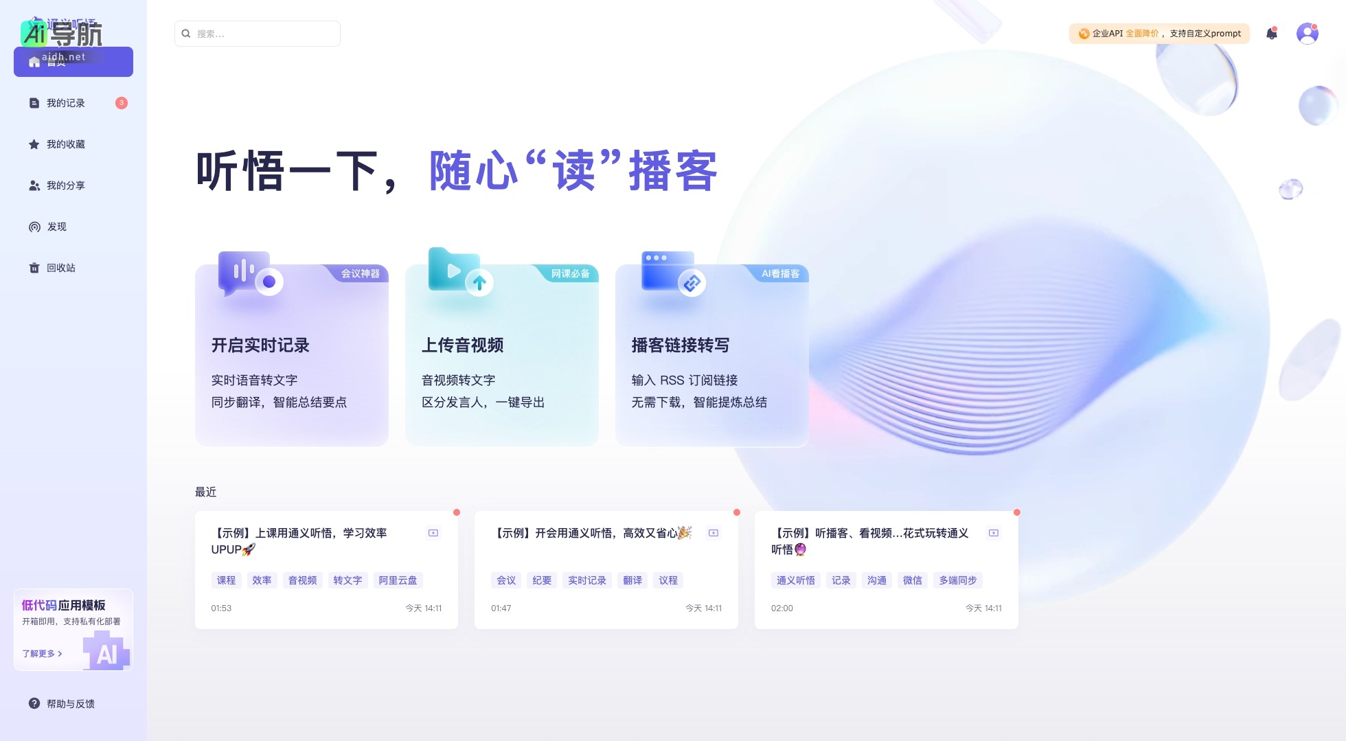 通义听悟还提供了企业API,支持自定义prompt和低代码应用模板,方便用户进行私有化部署,满足企业的个性化需求。通过全面降价,通义听悟致力于让更多用户享受到高效的语音转文字服务。