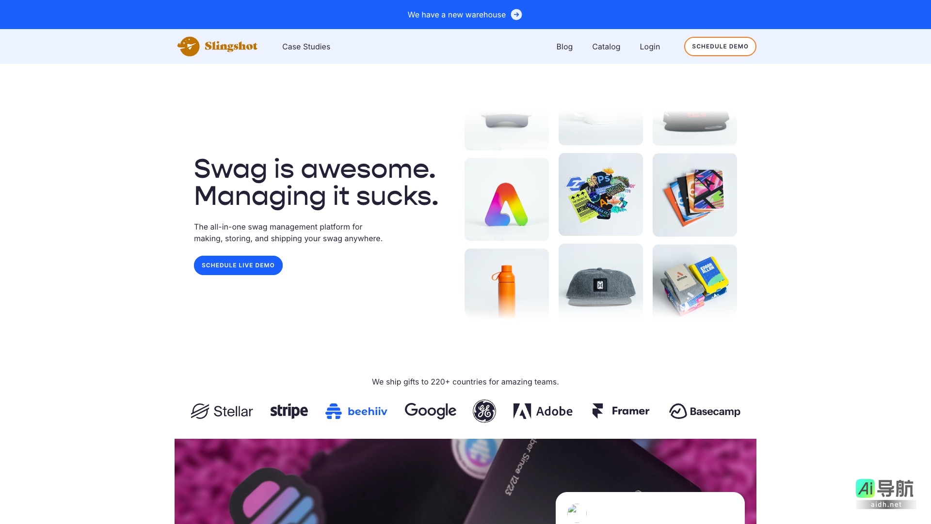 Slingshot是一款全方位的周边商品管理平台,旨在简化企业在制作、存储和运输周边商品(swag)方面的复杂流程。无论是大型活动的周边商品分发,还是日常的品牌推广,Slingshot都能提供高效的解决方案,帮助企业轻松管理其周边商品。