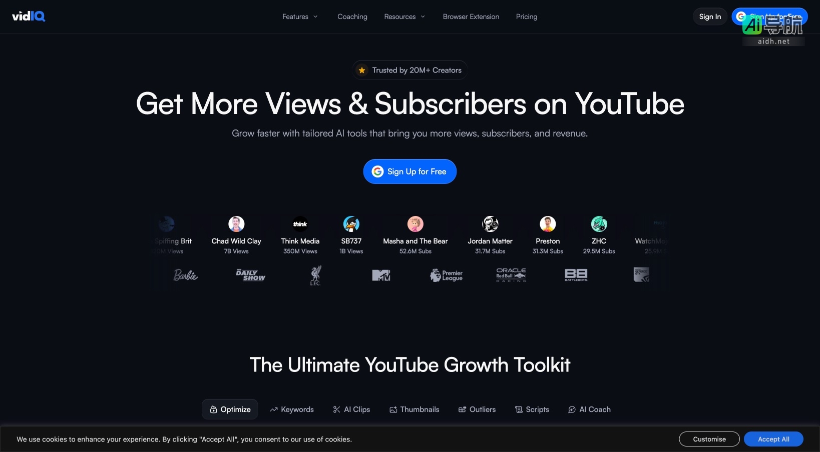 vidIQ是一款专为YouTube创作者设计的工具,旨在帮助用户提升视频观看量和订阅数,进而实现更快的成长和更高的收益。该平台结合了人工智能技术与人性化的指导,提供了一系列强大的功能,助力创作者优化其内容。