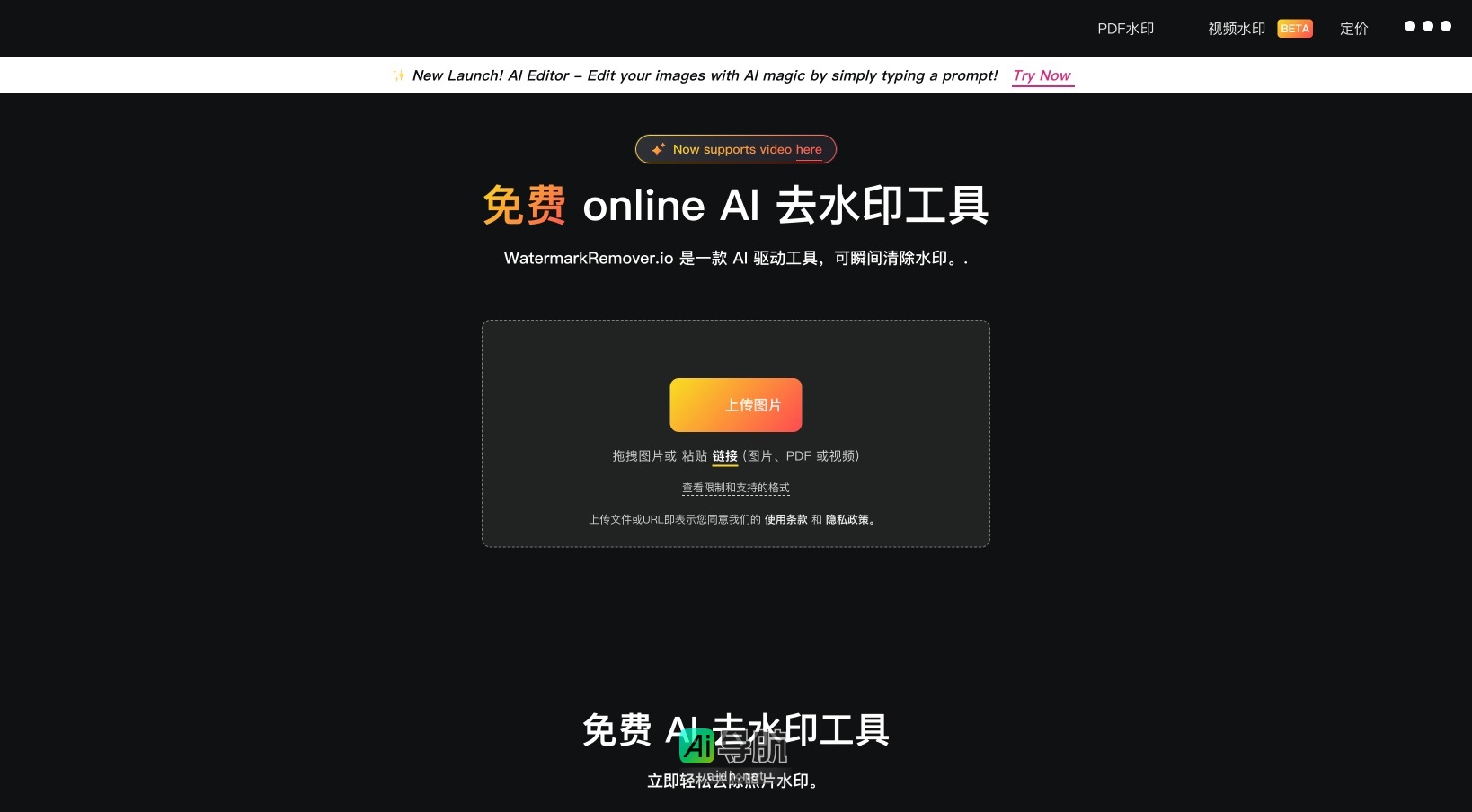 Watermarkremover.io 是一款基于人工智能的去水印工具,旨在帮助用户轻松去除图片、视频和PDF中的水印。该平台提供了简单易用的界面,适合各种技术水平的用户,无需专业技能即可快速完成水印去除。