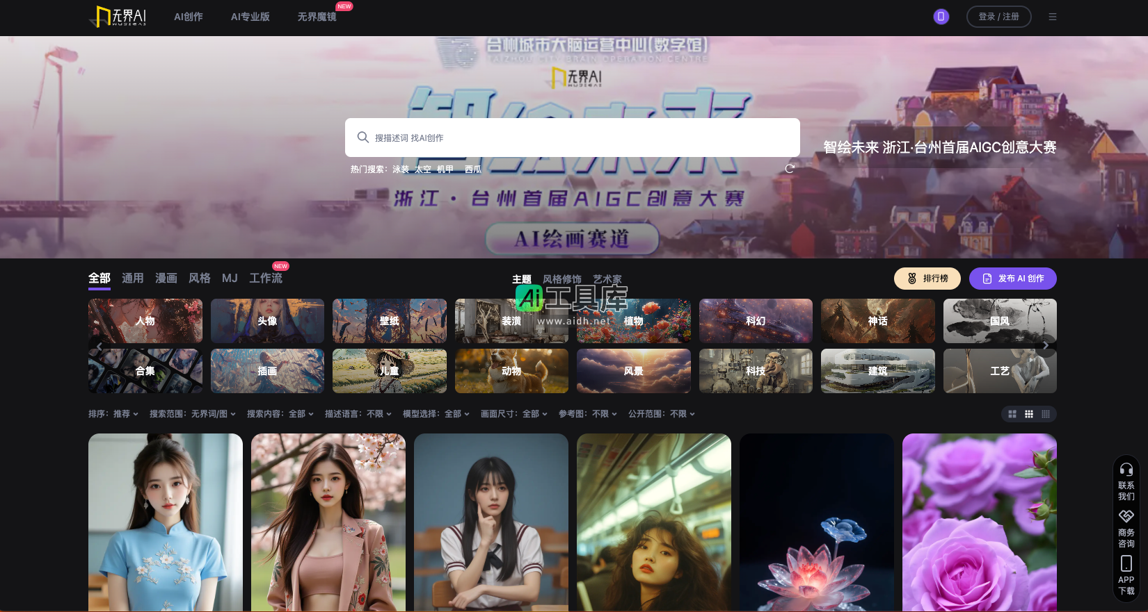 无界AI是一个集AI创作、搜索、图库、社区交流为一体的多功能平台,致力于为用户提供一站式的AI创作与共享服务。无论是对AI绘画感兴趣的艺术爱好者,还是需要高效创作工具的专业人士,均能在这个平台上找到满足自己需求的功能。通过强大的AI技术支持,用户可以轻松生成艺术作品,体验创作的乐趣,甚至可以在平台上与其他创作者进行交流和分享,进一步激发创作灵感和想法。