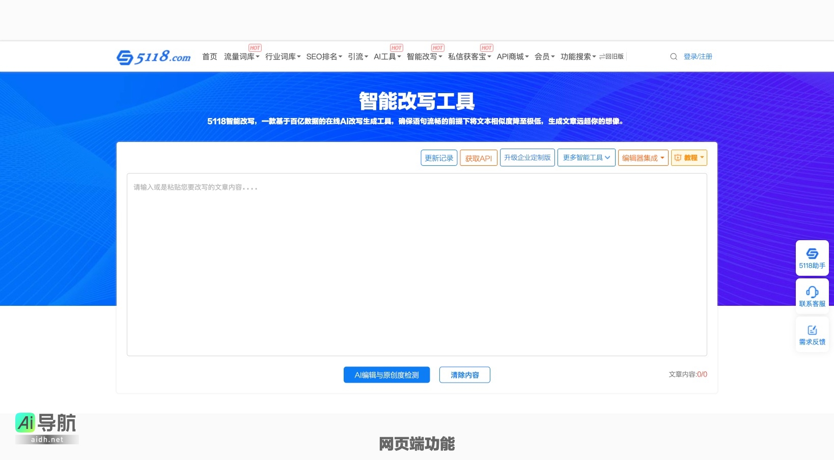 5118智能改写工具是一款基于强大AI技术的在线文本改写生成工具,致力于帮助用户高效创作内容。该工具利用百亿级数据,确保生成的文本在流畅性的基础上,极大降低相似度,满足用户对原创内容的需求。以下是该工具的主要功能和特点: