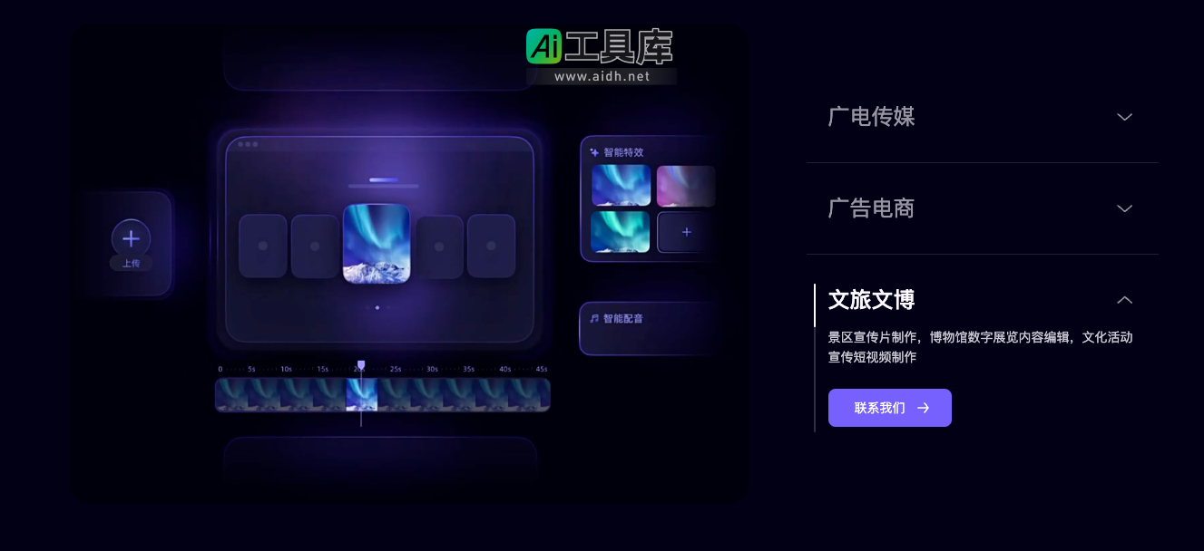寻光并不仅限于提供通用的创作工具,它还根据不同的行业需求,提供定制化的AI视频解决方案。例如,在广告行业,寻光能够根据产品特性生成专业的视频广告;在文旅行业,平台则可以帮助创作者制作独具特色的景区宣传片。无论是广电、广告还是文旅行业,寻光都能够提供量身定制的创作支持,帮助用户轻松应对各种行业挑战。