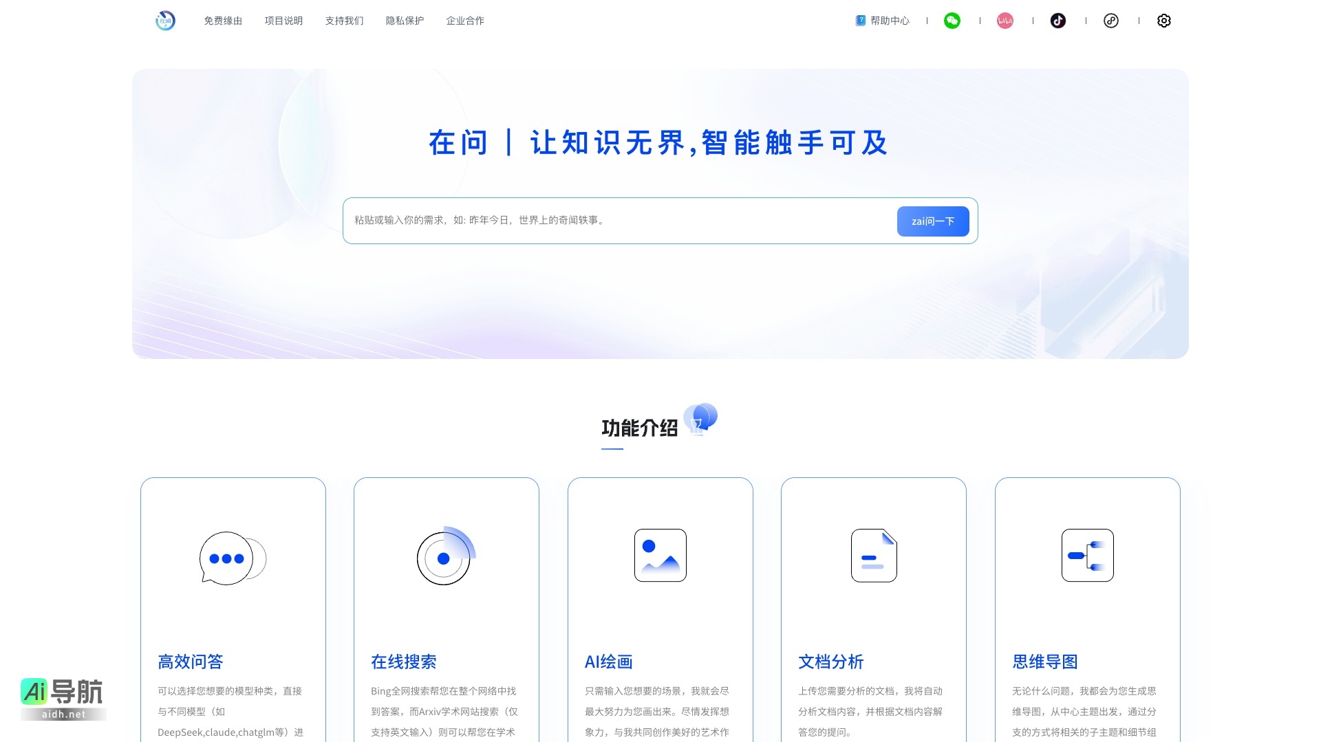 在问是一个致力于让知识无界、智能触手可及的平台,提供多种高效问答和智能服务,帮助用户快速获取所需信息。以下是该网站的主要功能和特点: