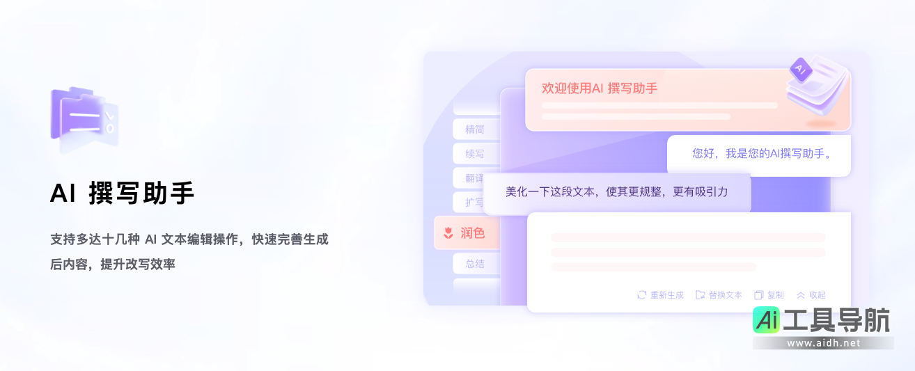 讯飞智文不仅仅是一个文档生成工具,更是一款强大的AI撰写助手。它支持十几种智能文本编辑操作,包括智能改写、优化表达、调整逻辑、增强可读性等。用户在生成文档后,可以快速进行修改和润色,提升内容的专业度和表达效果。无论是写作新手还是资深编辑,都能借助AI的智能辅助,提高文档质量。